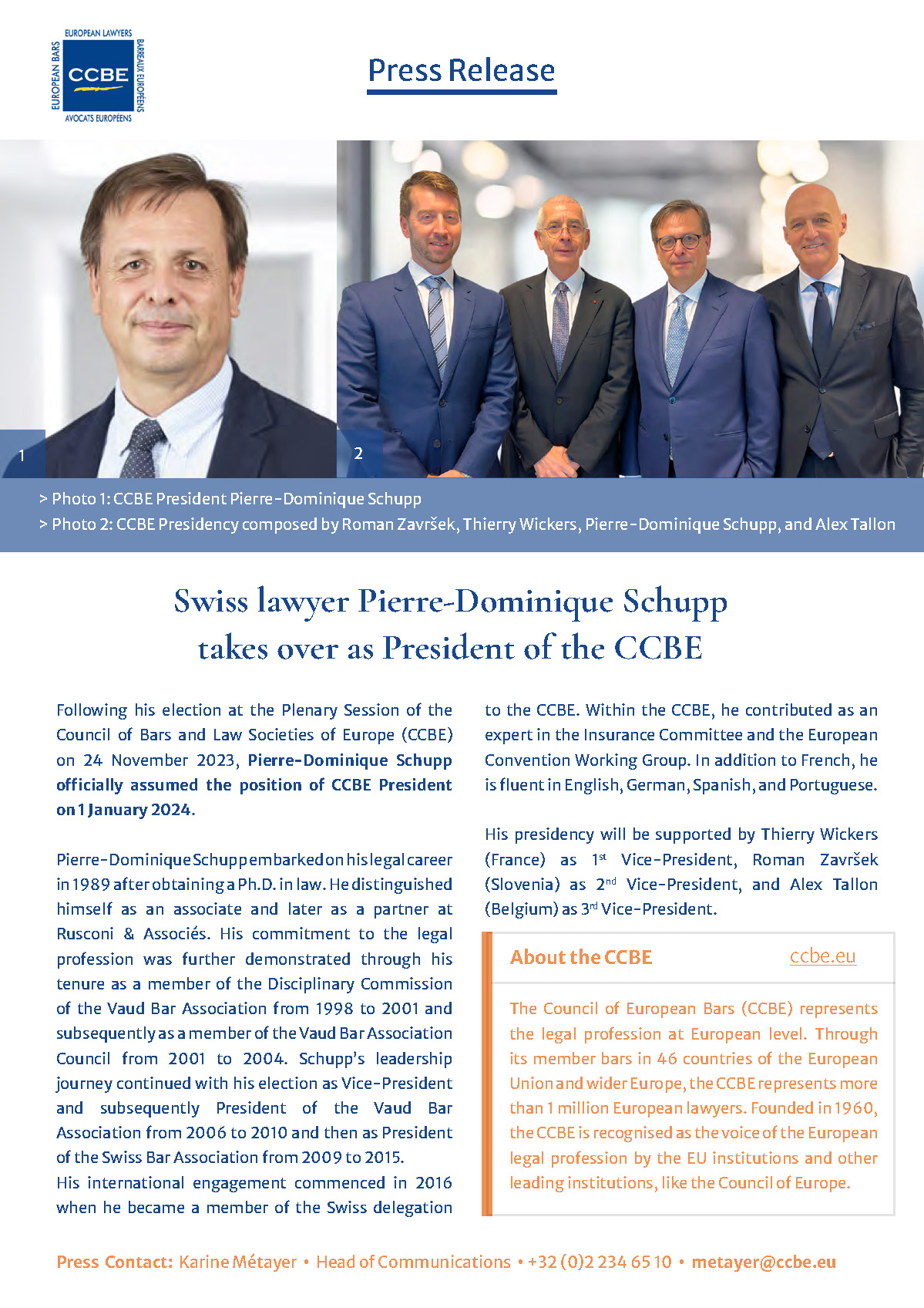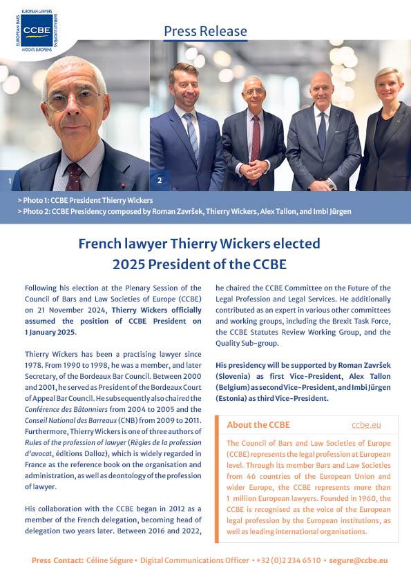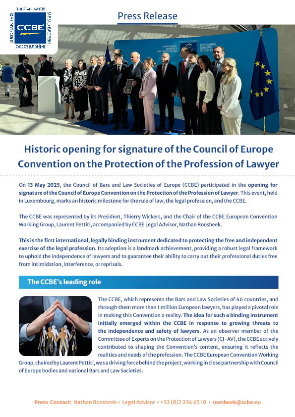The Council of Bars and Law Societies of Europe (CCBE), established more than 60 years ago, represents the Bars and Law Societies of 46 countries,…
