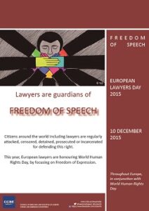 European Lawyers Day on the theme of Freedom of Speech took place throughout Europe on 10 December 2015, in conjunction with World Human Rights Day.