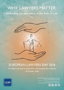 The 2018 edition of European Lawyers Day (ELD) took place on 25th October, the same day as the European Day of Justice. This year’s theme is: “Why Lawyers matter: Defending the defenders of the Rule of Law”.
