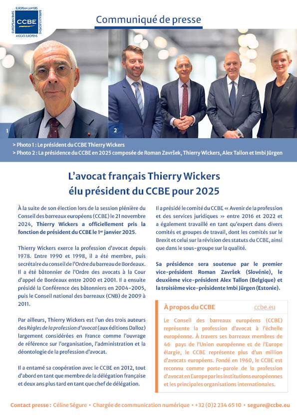 L’avocat français Thierry Wickers élu président du CCBE pour 2025
