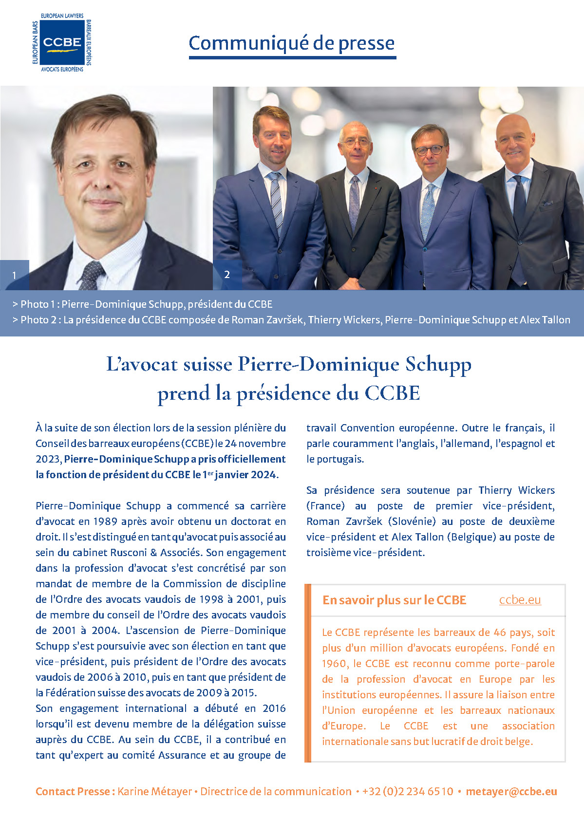 L’avocat suisse Pierre-Dominique Schupp prend la présidence du CCBE (02/01/2024)